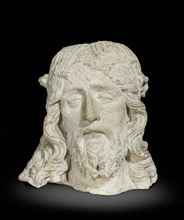 Cette tête de Christ aussi élégante qu’expressive est à rapprocher d’un buste publié en 2007 par Pantxika Béguerie-De Paepe, provenant très vraisemblablement de l’église Saint-Vulfran-de-la-Chaussée d’Abbeville, aujourd’hui au Musée Boucher-de-Perthes, et datable vers 1520. On y retrouve la même chevelure aux longues mèches sinueuses et la même barbe symétrique et soignée.