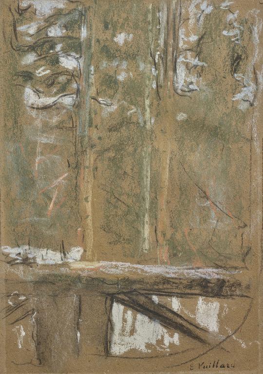 On peut rapprocher ce pastel émouvant, dans un état parfait et d’une évidente modernité (on peut penser aux recherches, quelques années auparavant, de Mondrian), d'un passage, tout aussi sobre, du journal de Vuillard : « samedi 17 matin : temps de dégel grande promenade (…), sapins monotones ; après déjeuner écris, petit pastel. »
